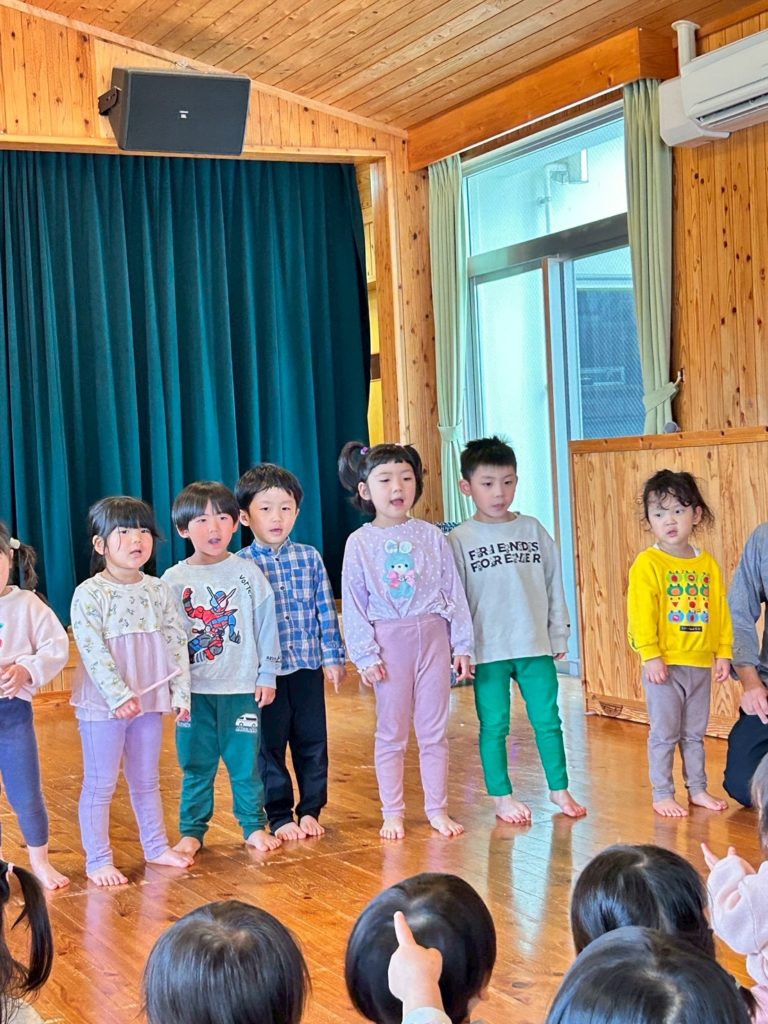 憧れの年長さんになった子たちは、はりきって歌を手遊びを披露してくれました。