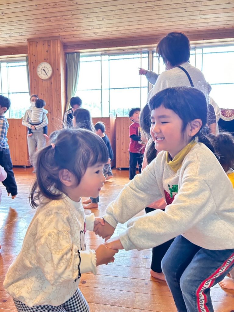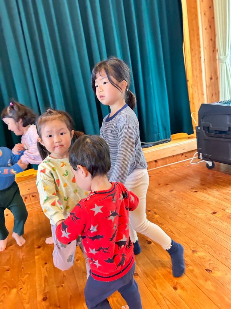 自由の森では、格式ばったものではなく、みんなで歌をうたい、ふれあい遊びを楽しみ